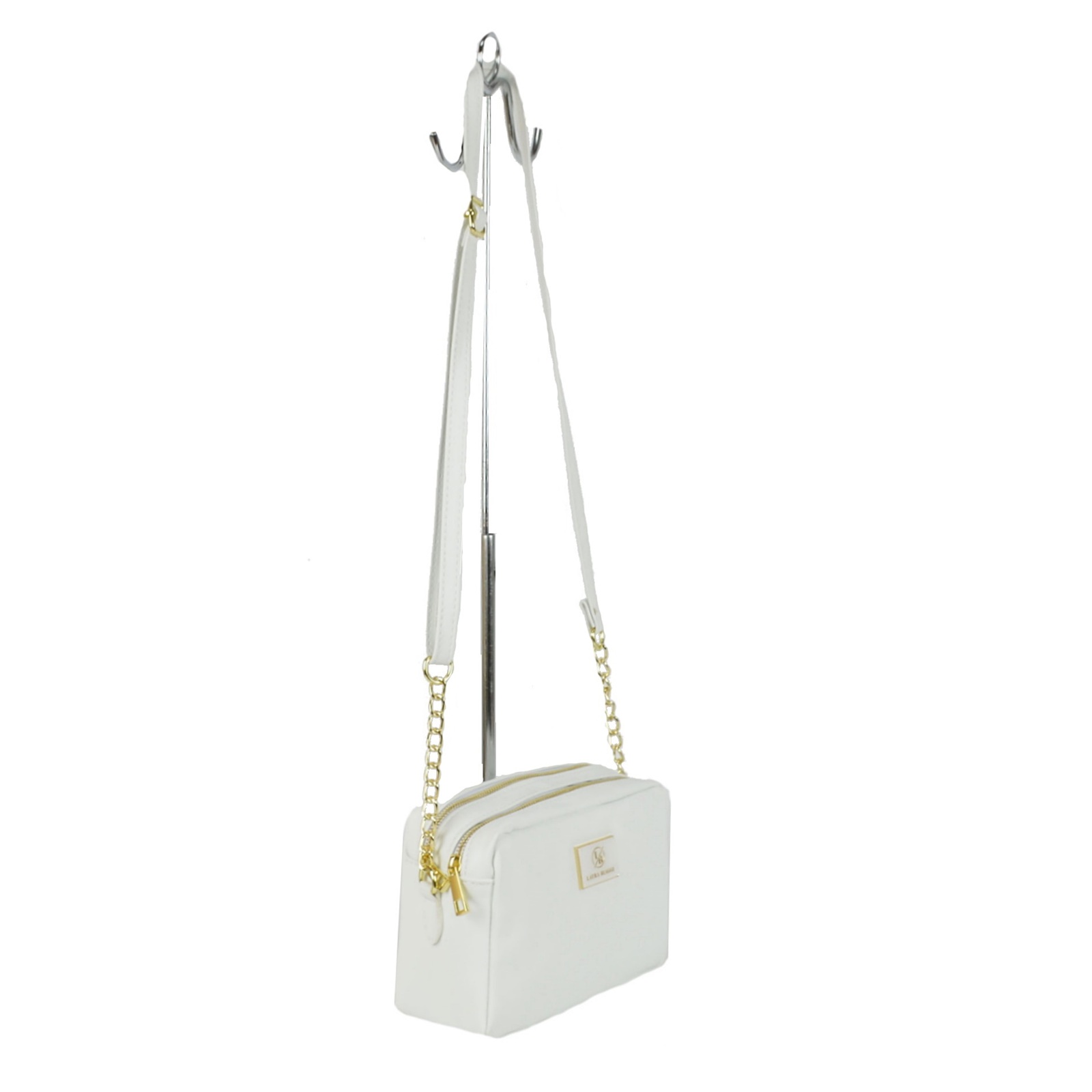 2 - komorowa, zasuwana, zdobiona logo i łańcuszkiem przy pasku.