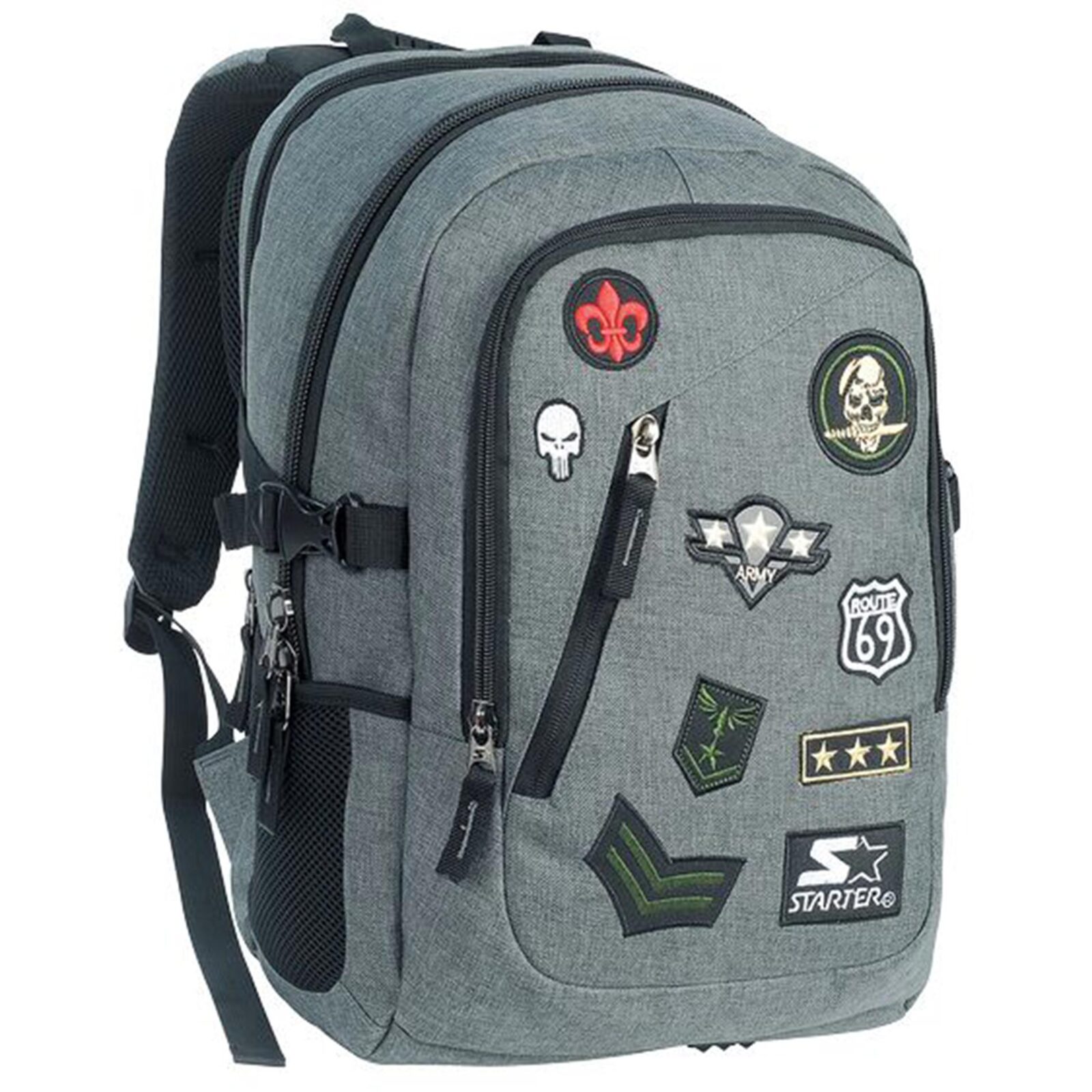 Plecak szkolny STARTER 8773 z naszywkami - Popiel {BLUE0143}