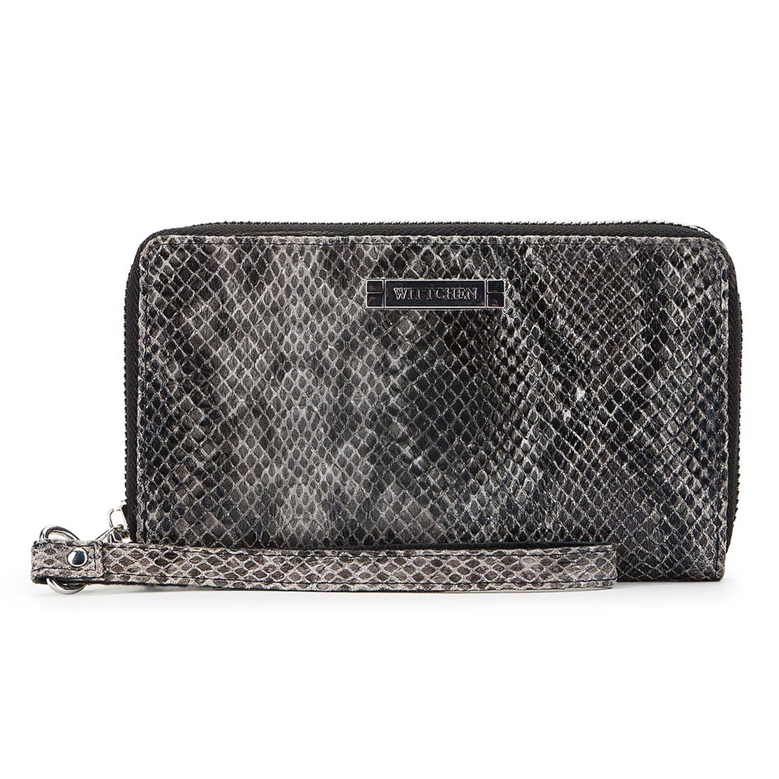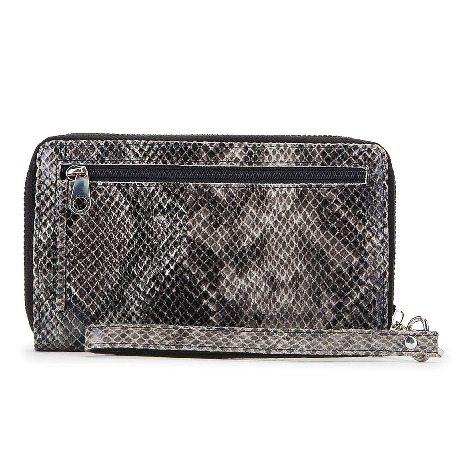 Duży portfel damski z kieszonką na telefon, paskiem na rękę i ochroną kart.