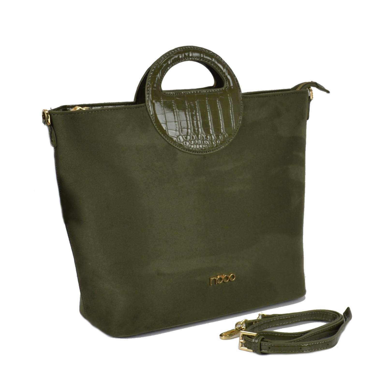 Duża torebka shopperka z zamszowej skóry ekologicznej z wykończeniami (rączka i spód) z lakierowanej skóry ekologicznej imitującej skórę węża.