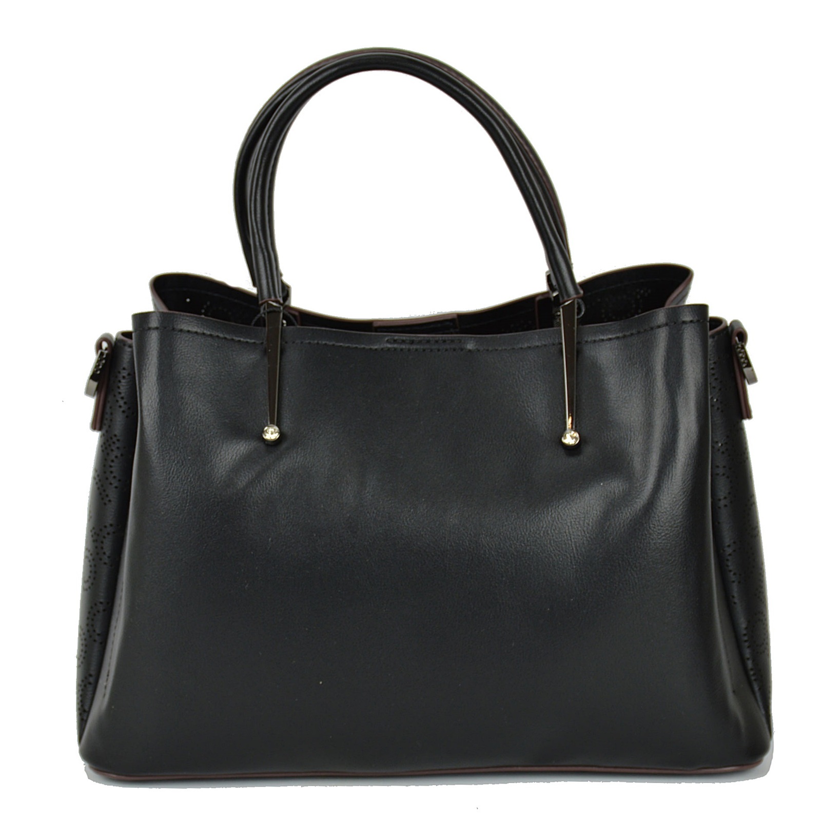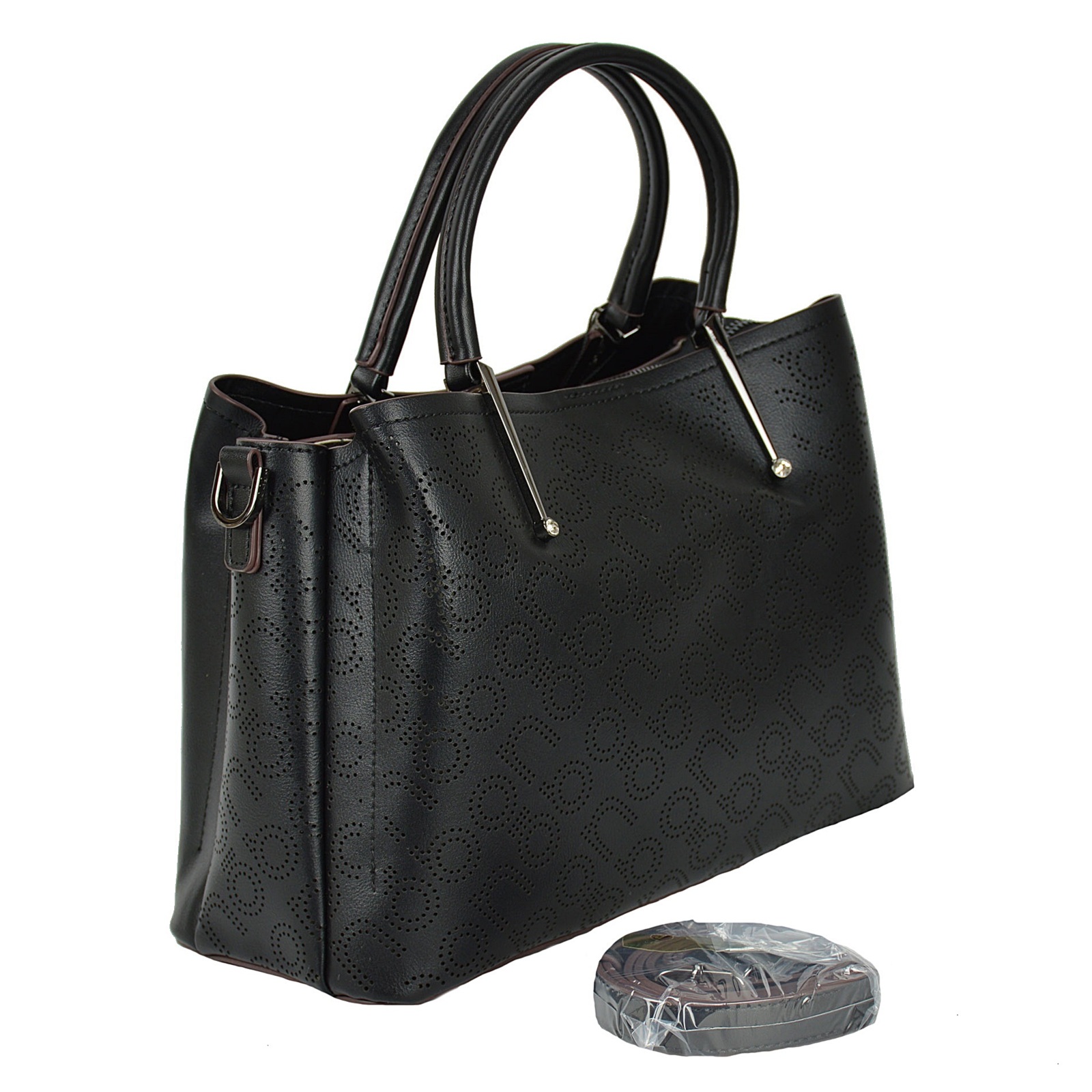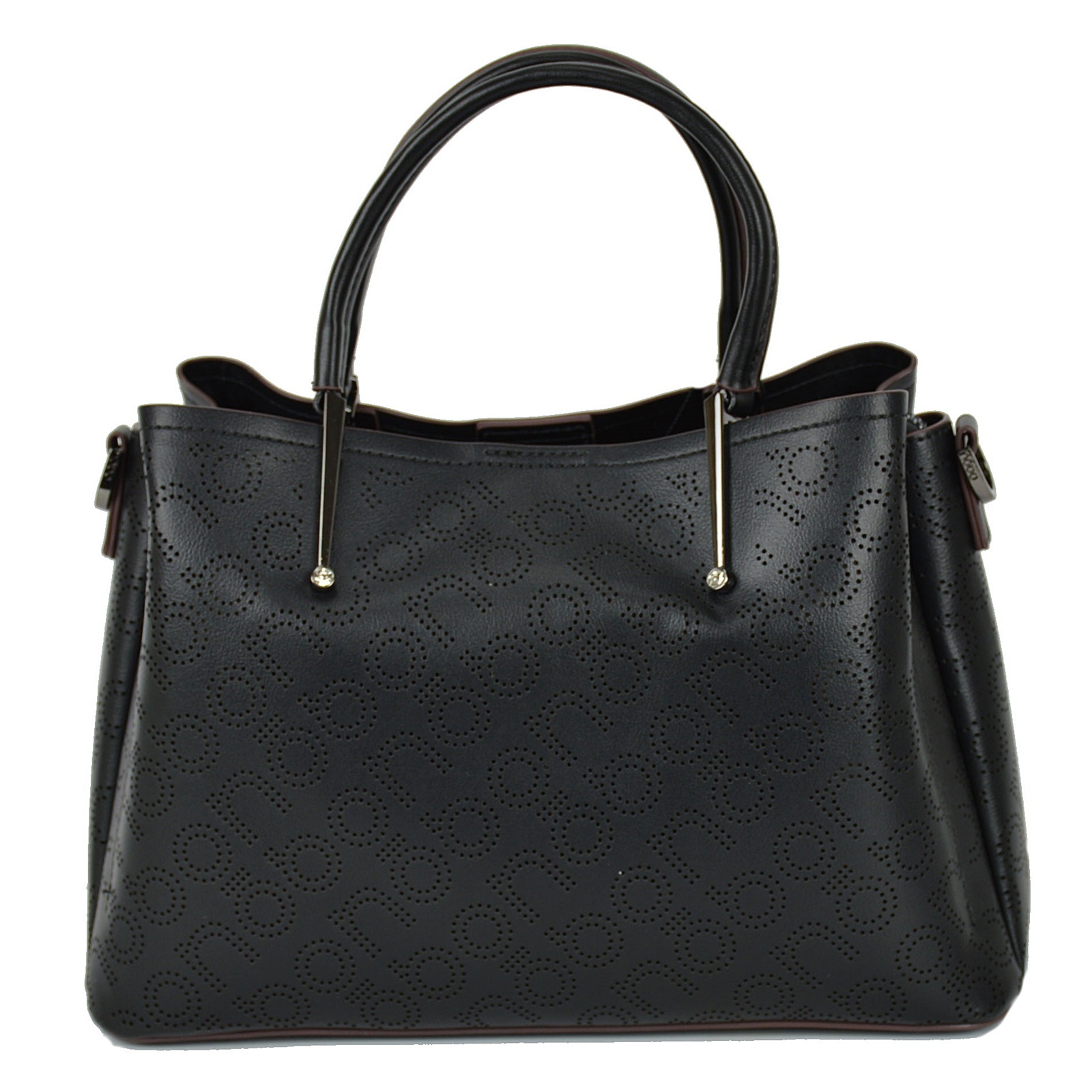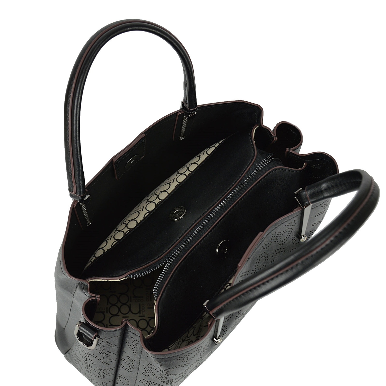 Zdobiona złotymi dżetami i dziurkowanym logo.